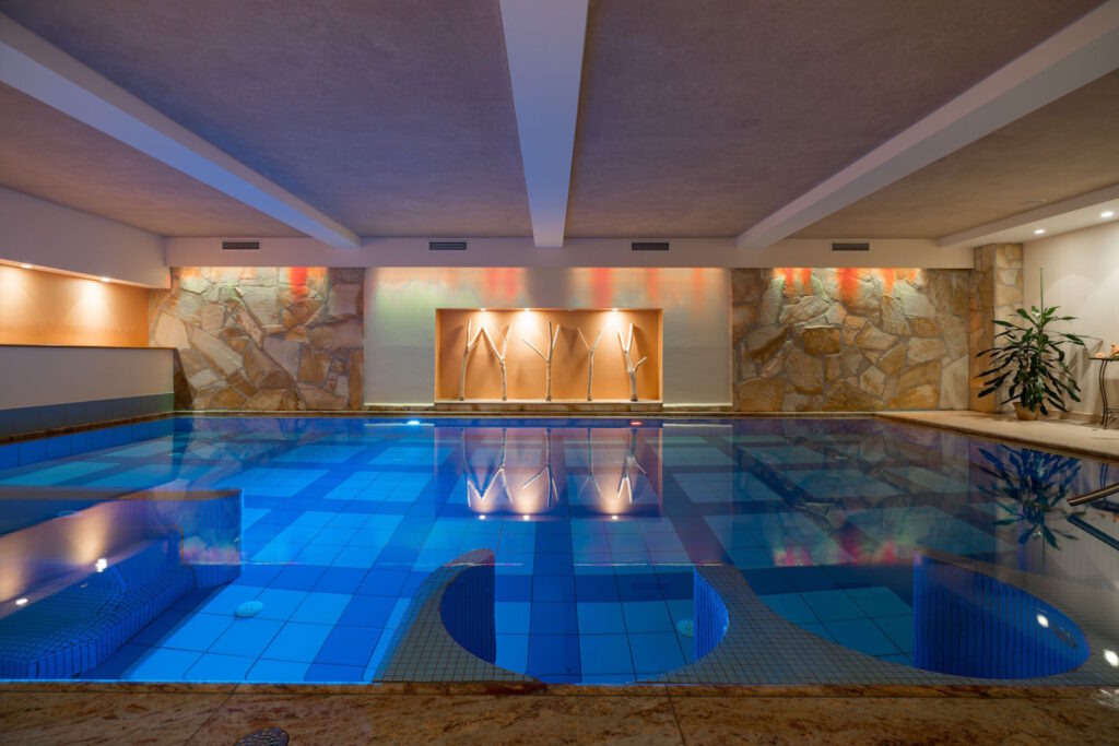 Für welches Zimmer Sie sich auch entscheiden: Die geschmackvolle Einrichtung vermittelt ein Gefühl der Geborgenheit und des Wohlbefindens. Fühlen Sie sich hier wie zu Hause! Im gesamten Wellnessbereich haben Sie herrliche Ausblicke auf die umliegende Bergwelt. Genießen Sie das wohlig temperierte Hallenbad und die Saunalandschaft mit Zirbensauna und Sole-Kräuterdampfbad, finden Sie Ihr Lieblingsplätzchen in den unterschiedlichen Ruheräumen.