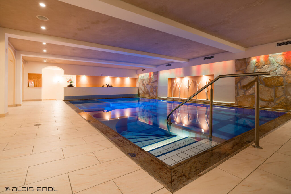 Im gesamten Wellnessbereich haben Sie herrliche Ausblicke auf die umliegende Bergwelt. Genießen Sie das wohlig temperierte Hallenbad und die Saunalandschaft mit Zirbensauna und Sole-Kräuterdampfbad, finden Sie Ihr Lieblingsplätzchen in den unterschiedlichen Ruheräumen.